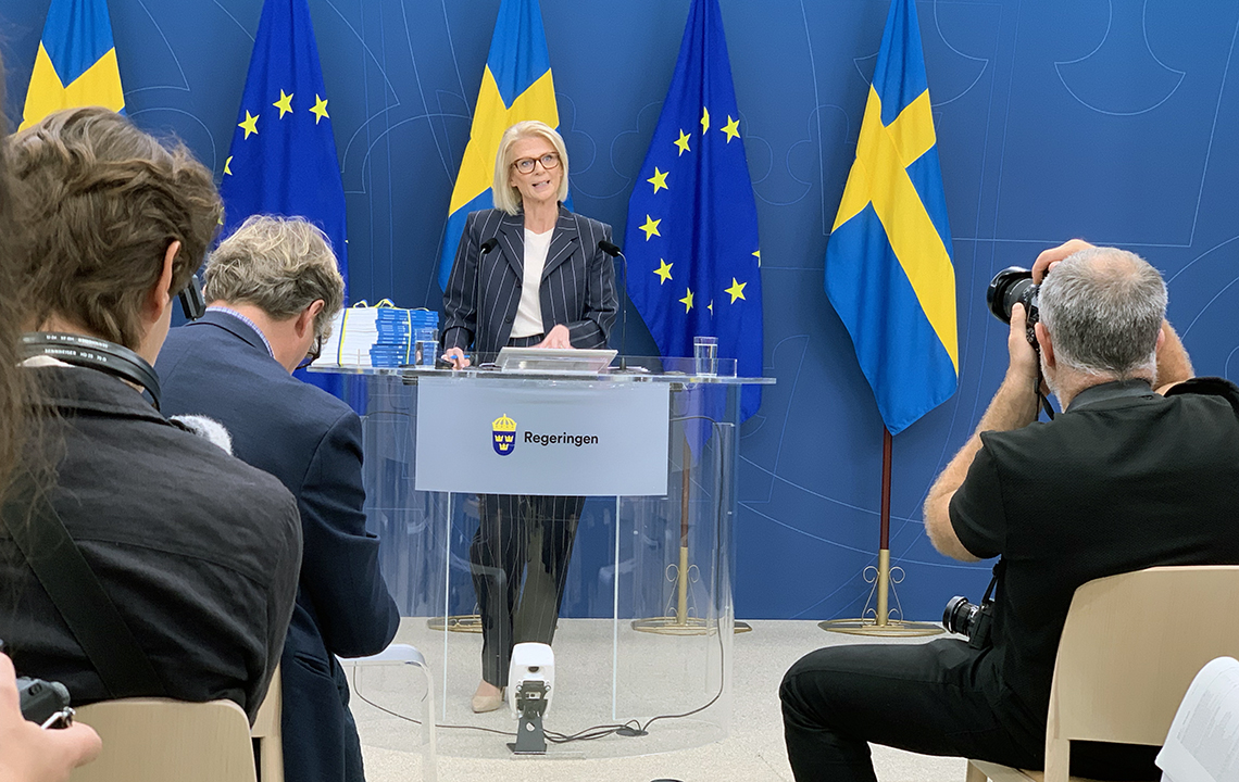 – Vi presenterar en historisk utbyggnad av rättsväsende och försvar. Anslaget till försvaret är 27 miljarder mer för 2024 än innevarande år, det är en enorm upprustning, sade Elisabeth Svantesson på onsdagens pressträff.