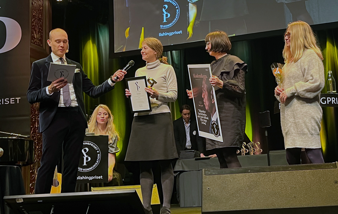 ”För ett starkt omslag, fina grafiska detaljer och utmärkta personporträtt i text och bild.” Så löd motiveringen till priset som delades ut på Publishinggalan på Berns i Stockholm.