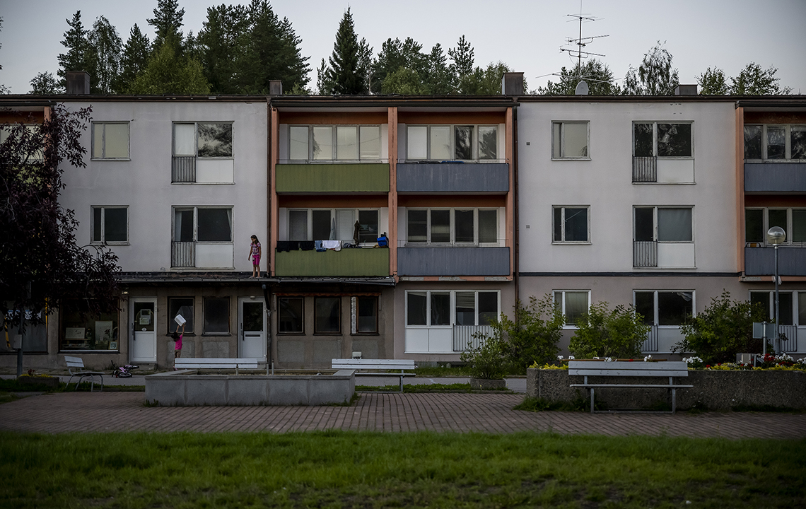 Bärplockare från Bulgarien lockades till Älvsbyn med löfte om att tjäna pengar. Första året hamnade de i utdömda hyreshus i Vidsel. Foto: Alexander Mahmoud / DN / TT