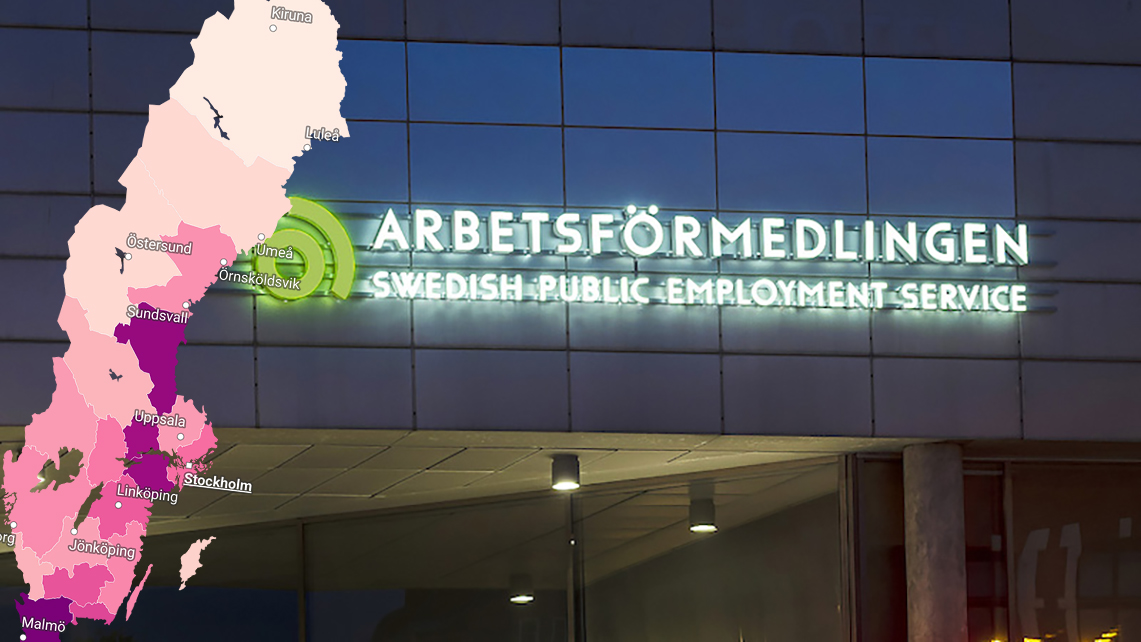 Arbetslösheten är högst i Skåne och lägst i norr. Foto: Arbetsförmedlingen, grafik: Akademikern
