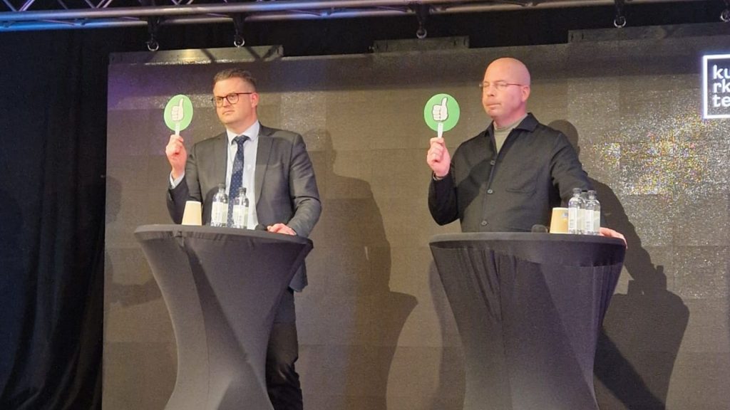 Både Anders Åhrlin (M) och Patrik Jämtvall (L) gav en ”tummen upp” till mer satsning på föräldrastöd. Foto: Rebecca Ekström
