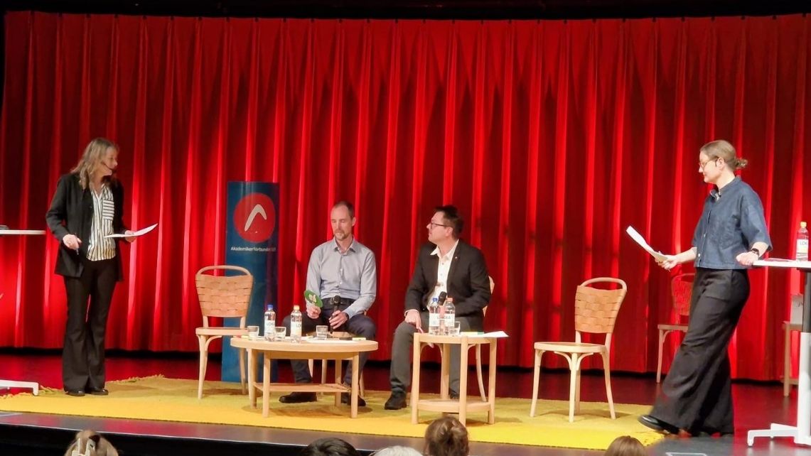Charlotte Karlsson, HR-direktör, Jenný Jensdóttir, distriktordförande i Akademikerförbundet SSR i Jönköpings län, Angelica Florin, enhetschef för barn och unga och Johannes Hagen, forskare i nationalekonomi. Foto: Annika Clemens