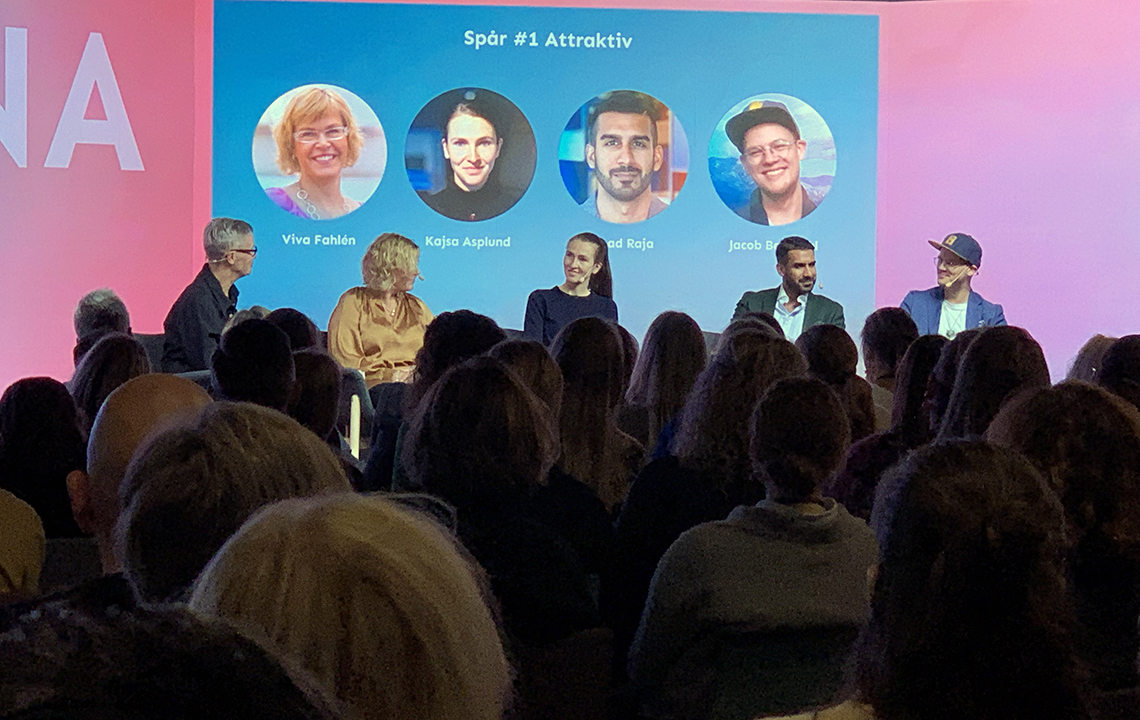 I den första panelen på HR-dagarna: Viva Fahlén, Kajsa Asplund, Amad Raja och Jacob Bergdahl. Moderator Siri Wikander (längst till vänster) Foto: Annika Clemens
