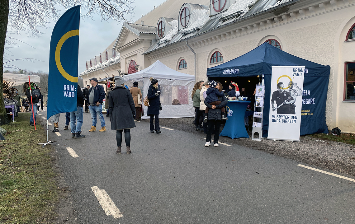 Kriminalvården söker tusentals nya medarbetare och försöker nå ut brett. Här visar de upp sig på Östermalmas julmarknad utanför Nyköping. Foto: Annika Clemens