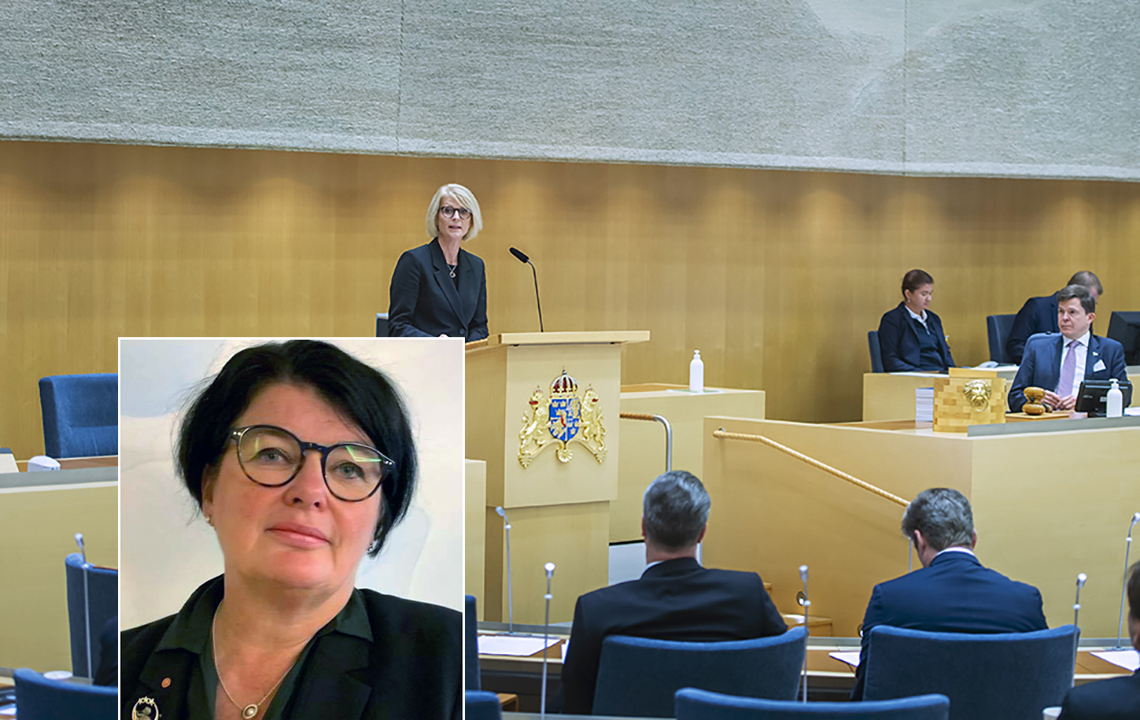Finansminister Elisabeth Svantesson (M) försvarade budgetpropositionen för 2023 i riksdagen. Foto: Anders Löwdin/Sveriges riksdag