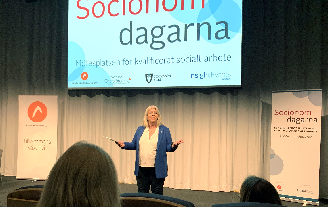 Camilla Waltersson Grönvall berättade också om arbetet med ny lagstiftning för att motverka desinformationskampanjen mot svensk socialtjänst. Det handlar om bland annat att kunna ta in vakter på socialkontoren och att kunna anonymisera beslut.