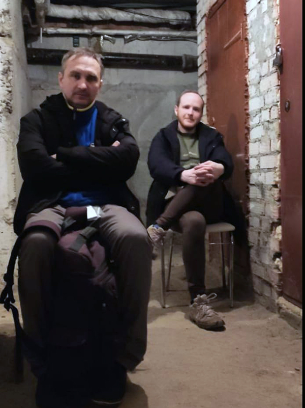 Artem Tidva i skyddsrummet tillsammans med en kollega.