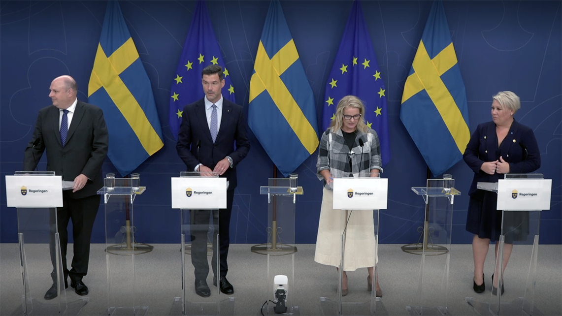 Patrick Reslow (SD), Johan Forsell (M), Lotta Edholm (L) och Camilla Brodin (KD), deltog på presskonferensen.