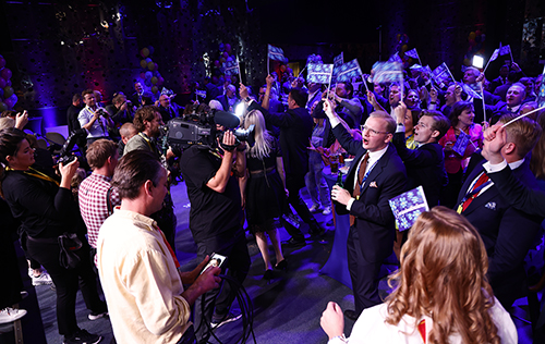 STOCKHOLM 20220911 Glädje, dans och feststämning under Sverigedemokraternas valvaka på Elite Hotel Marina Tower i Nacka på söndagskvällen. Foto: Stefan Jerrevång/ TT / kod 60160