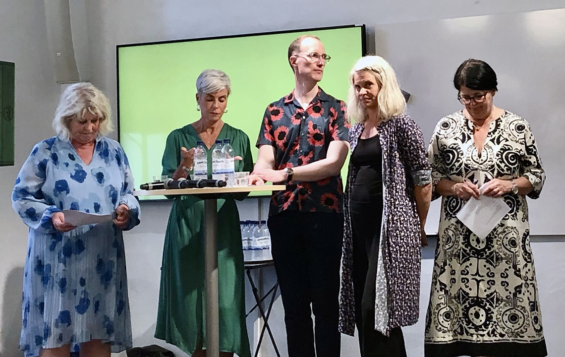 Socialtjänstminister Camilla Waltersson Grönvall, Åsa Furén-Thulin, SKR, Jan Jönsson (L), Lina Blombergsson, Sveriges socialchefer och Heike Erkers från Akademikerförbundet SSR var med i panelen i Almedalen. Foto: Markus Furuberg